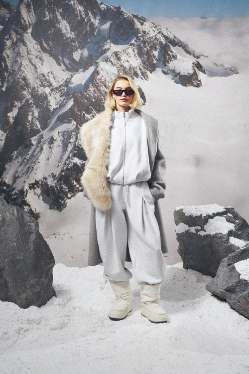 PLEAT DETAIL WIDE LEG JOGGERS - GREY MARL