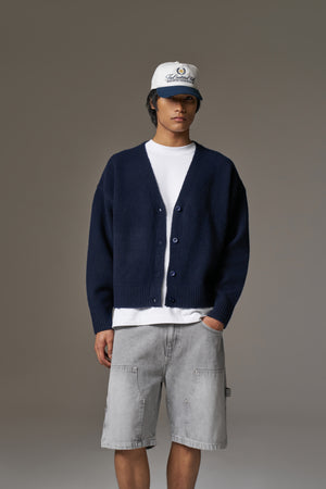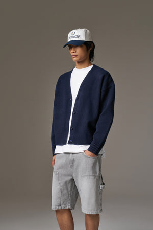 COPYRIGHT BRUSHED KNIT CARDIGAN - NAVY