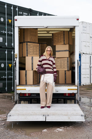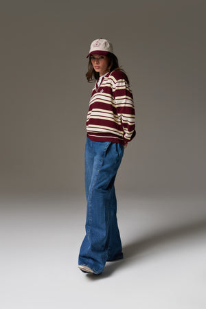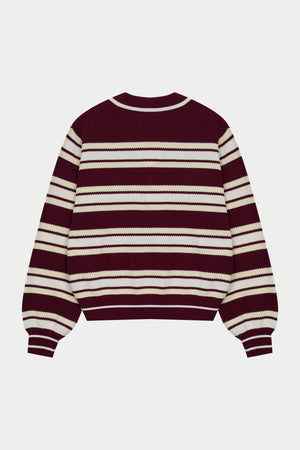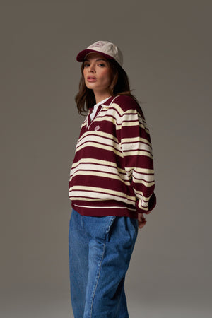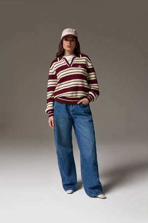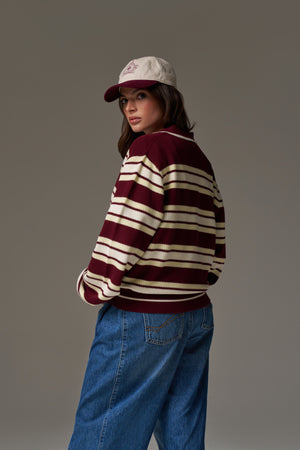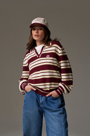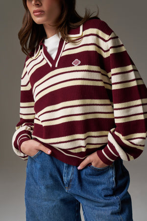 STRIPE KNITTED POLO SWEATSHIRT - BURGUNDY