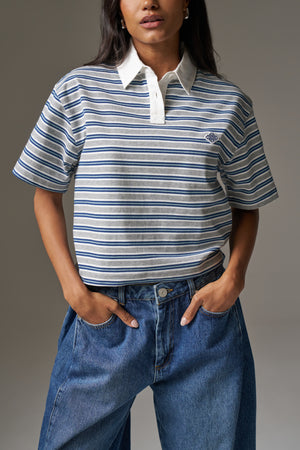 STRIPED POLO TEE - GREY