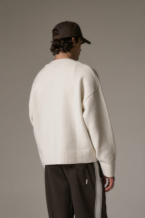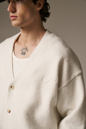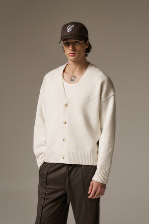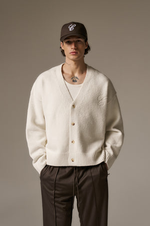 C EMBROIDERY KNITTED CARDIGAN - OFF WHITE