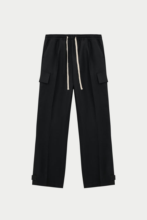 PLEATED WIDE LEG WOOL BLEND TROUSER