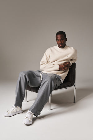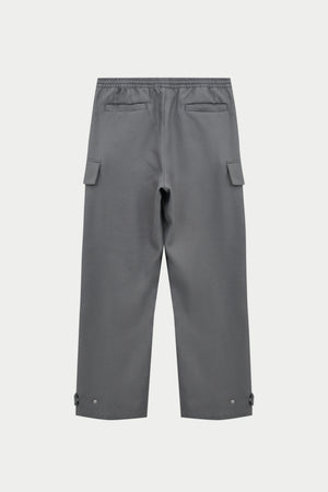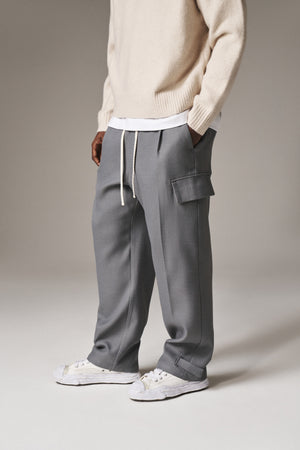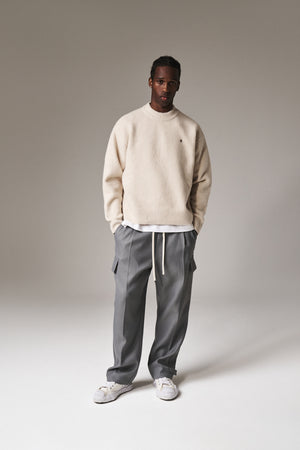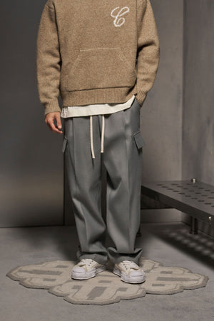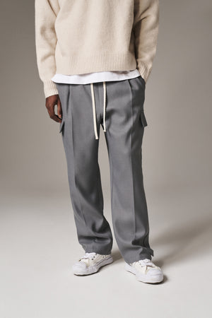 PLEATED WIDE LEG WOOL BLEND TROUSER - GREY