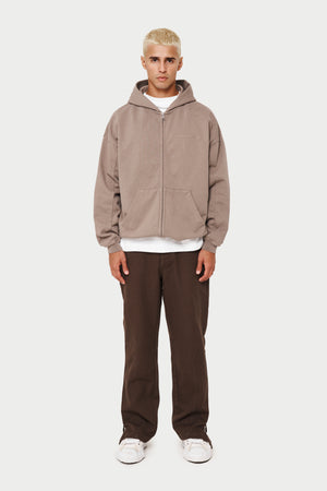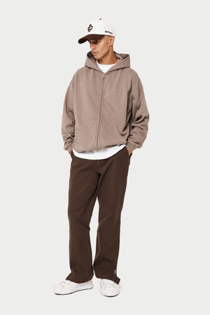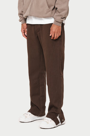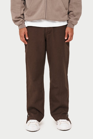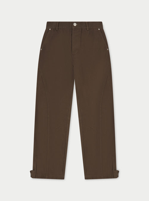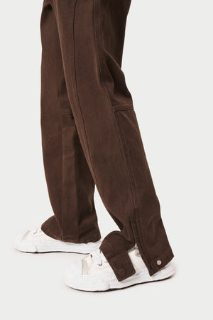 WOVEN CANVAS DISTRESSED TROUSER - BROWN
