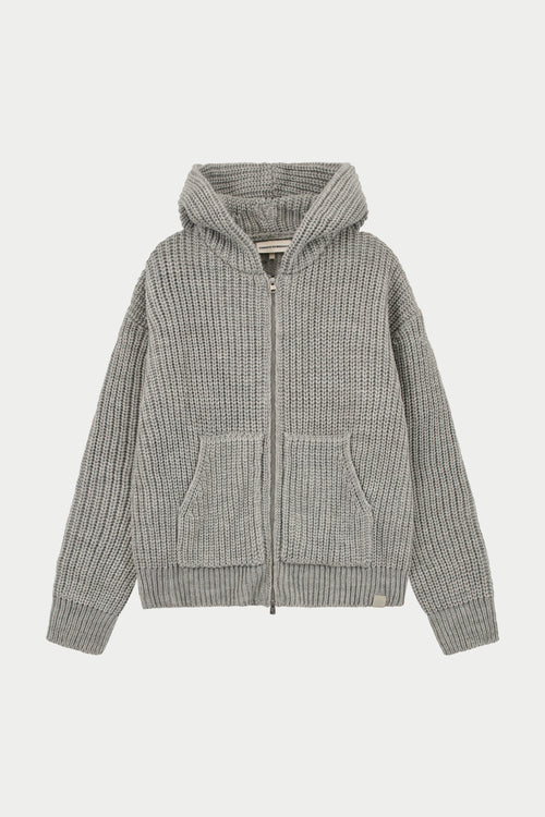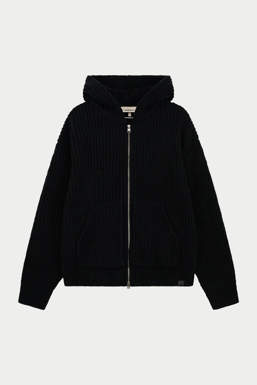 HEAVY RIB KNITTED ZIP THROUGH HOODIE