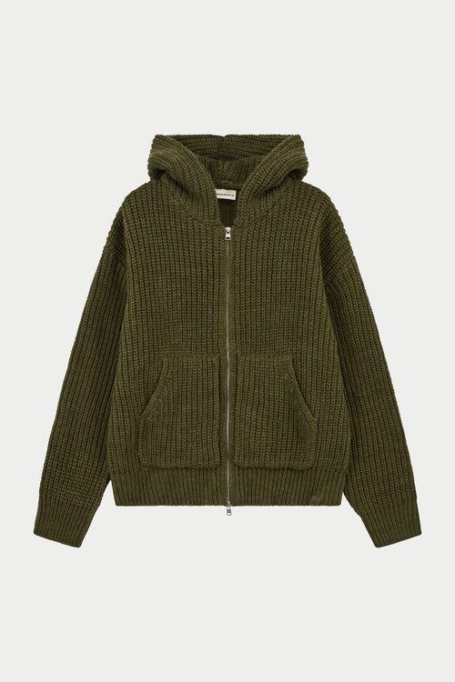 HEAVY RIB KNITTED ZIP THROUGH HOODIE - KHAKI