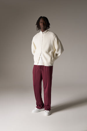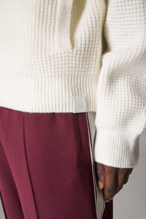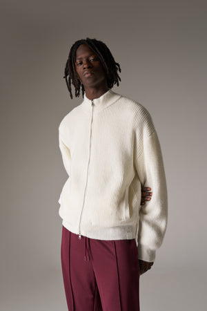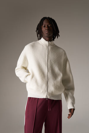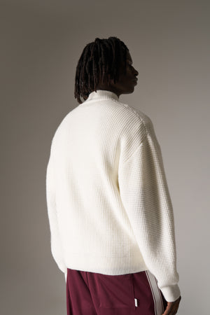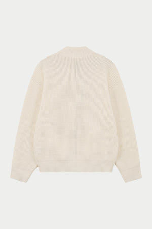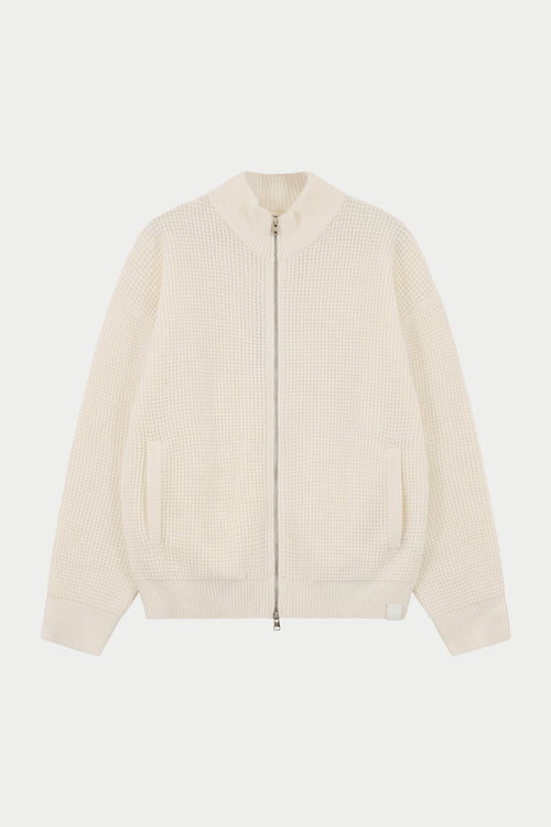 WAFFLE KNIT FUNNEL NECK ZIP THROUGH - WHITE