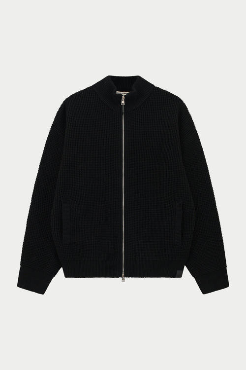 WAFFLE KNIT FUNNEL NECK ZIP THROUGH