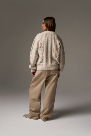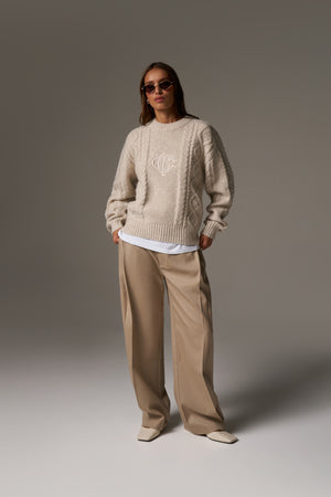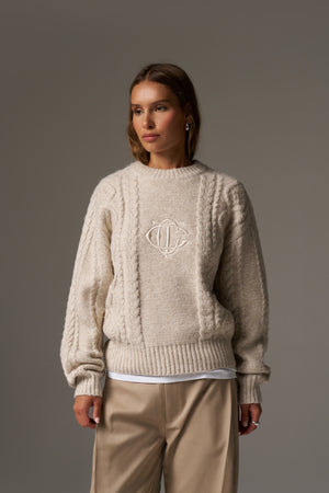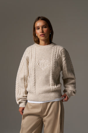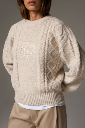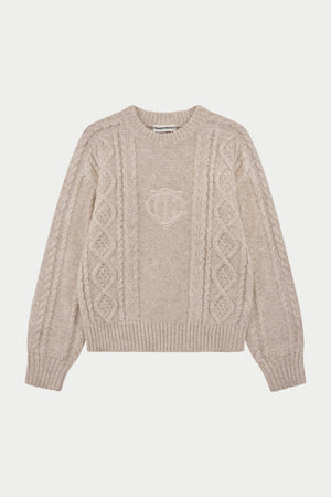 CABLE KNIT EMBROIDERED EMBLEM JUMPER - OAT