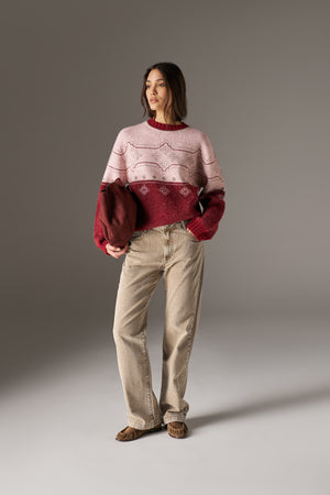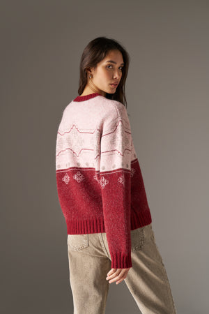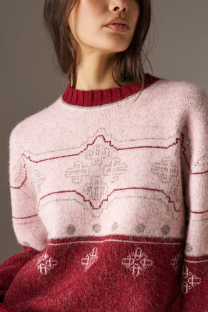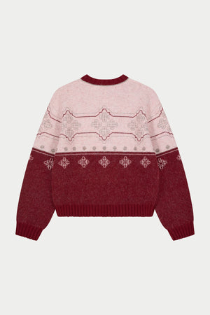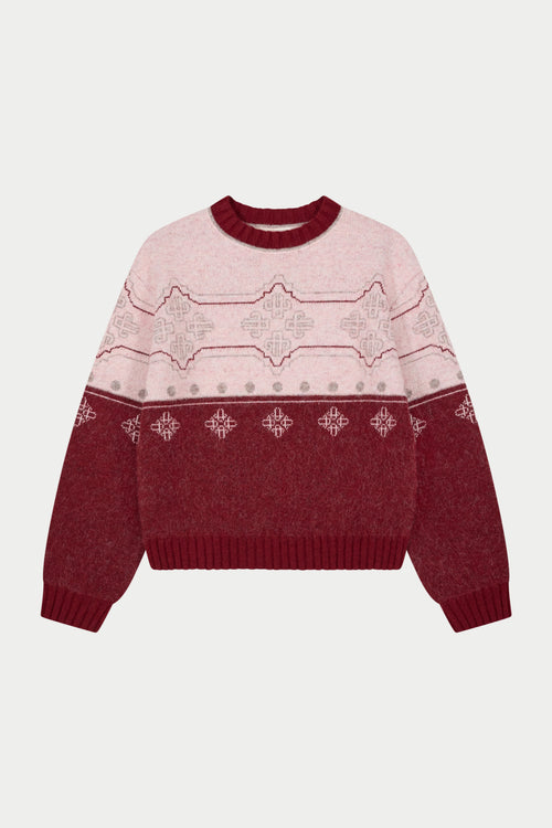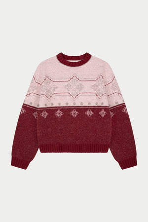 EMBLEM FAIR ISLE KNITTED JUMPER - BURGUNDY
