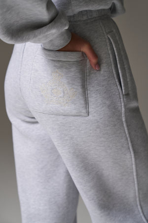 EMBROIDERED CREST RELAXED JOGGERS - GREY MARL