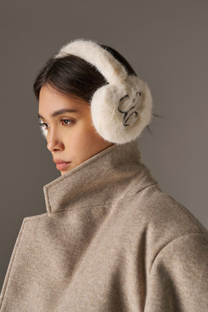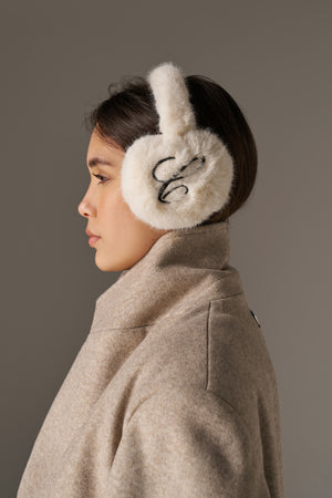 FAUX FUR SINGLE SCRIPT EARMUFFS - CREAM