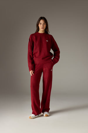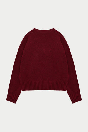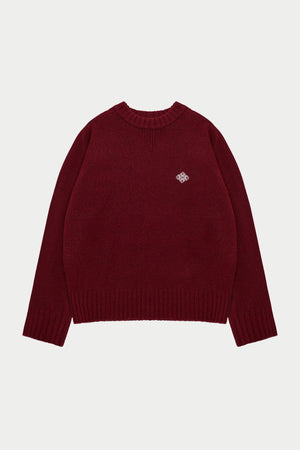 FLUFFY KNIT EMBLEM EMBROIDERED CREW - BURGUNDY