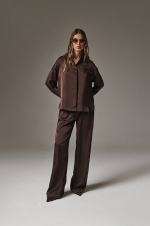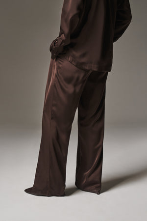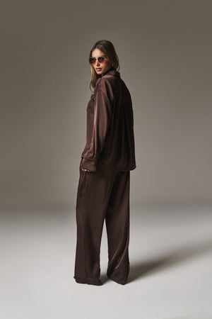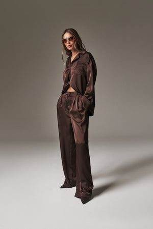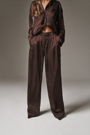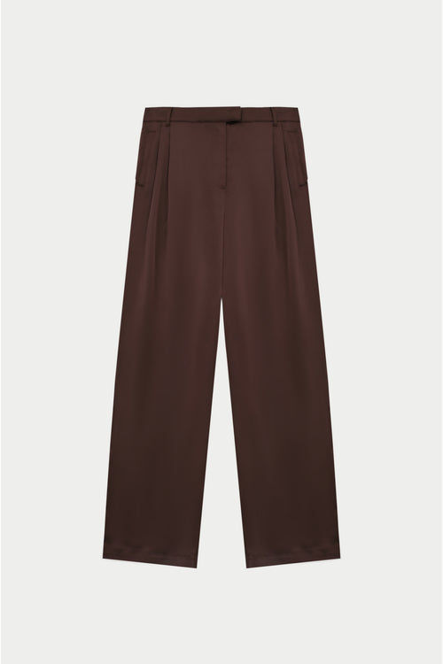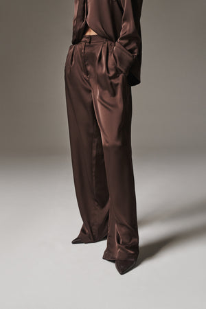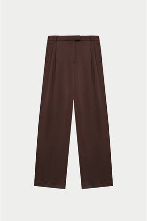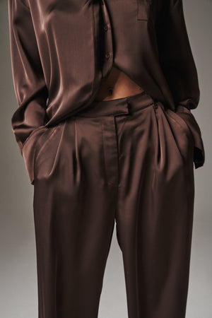 SATIN TAILORED RELAXED TROUSER - DEEP CHOCOLATE