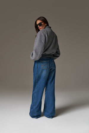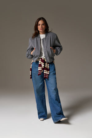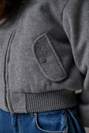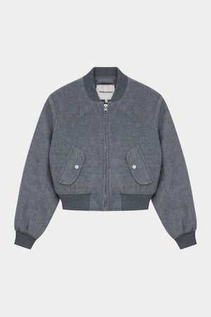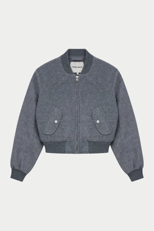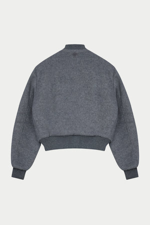 SHOULDER PADDED WOOL BLEND BOMBER JACKET - GREY MARL