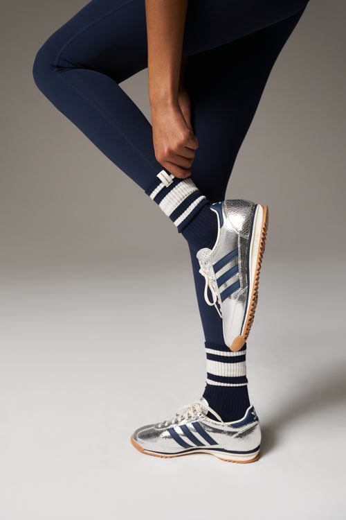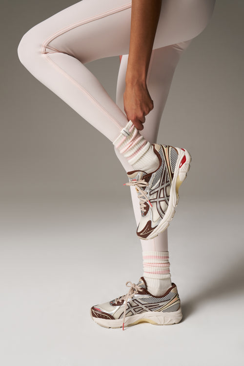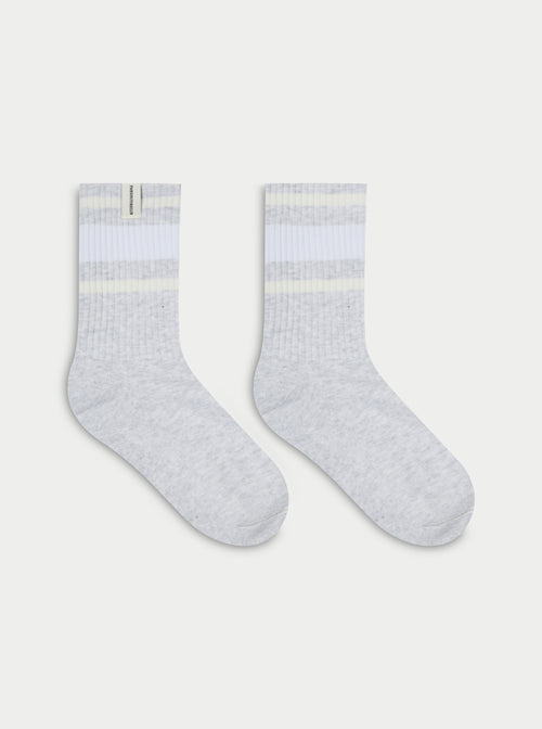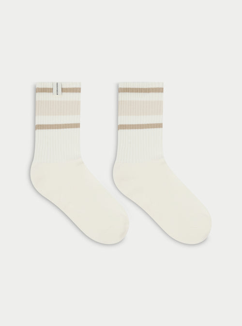 STRIPED BRANDED LABEL SOCK - BEIGE