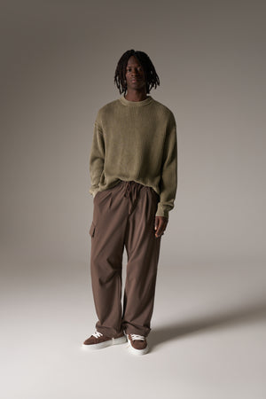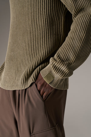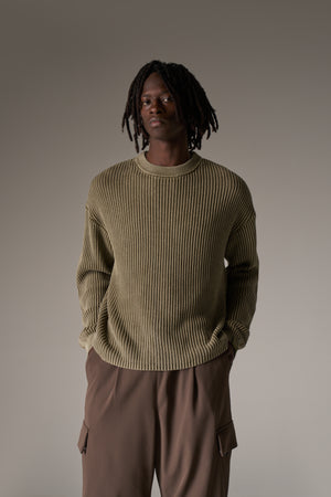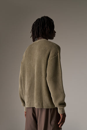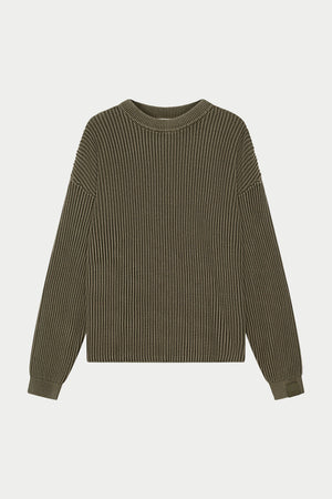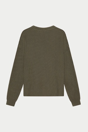 HEAVY WASHED RIBBED KNIT CREW - KHAKI