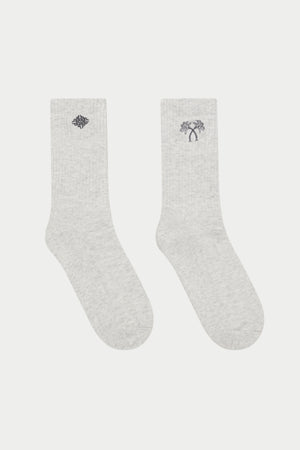 EMBROIDERED PALM SPORTS SOCKS - GREY MARL