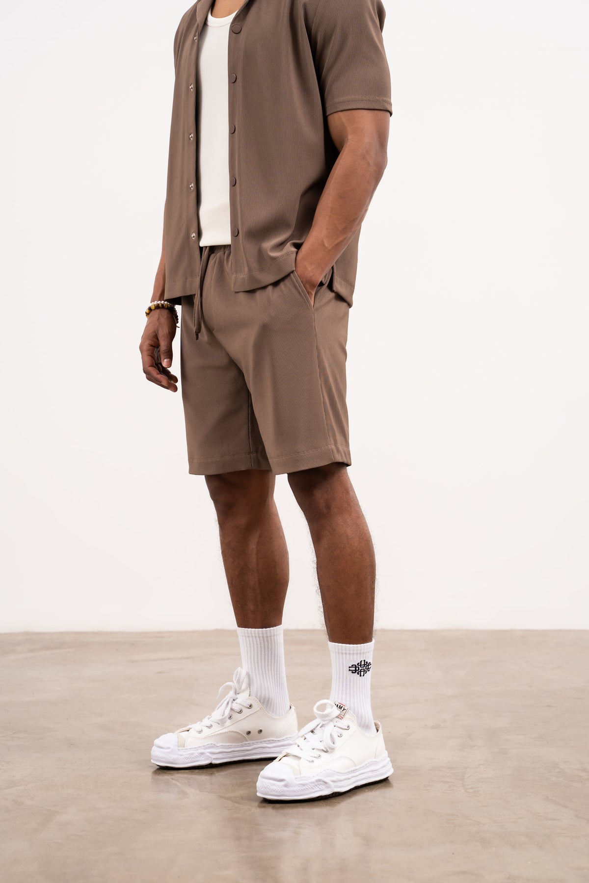 RIB TEXTURED SHORTS - BROWN