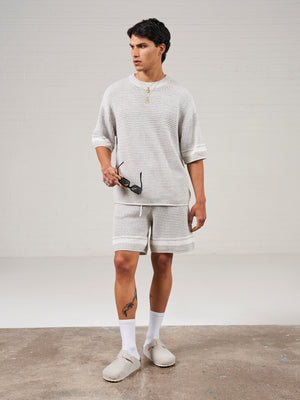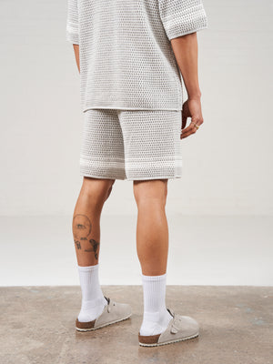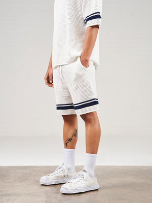 CROCHET KNITTED CONTRAST STRIPE SHORTS