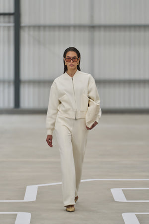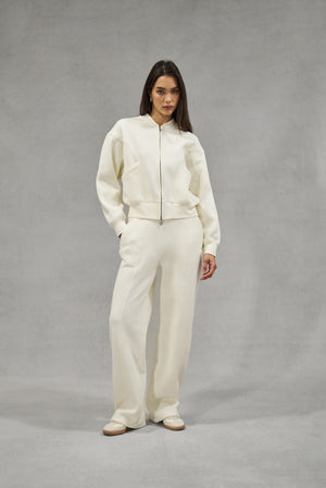 SEAM DETAIL CROSSOVER WAISTBAND JOGGERS - OFF WHITE