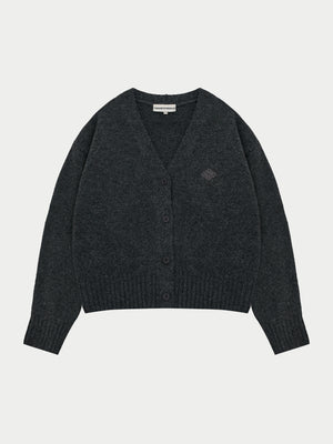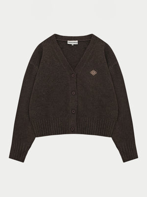 FLUFFY KNIT EMBLEM EMBROIDERED CARDIGAN