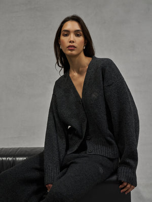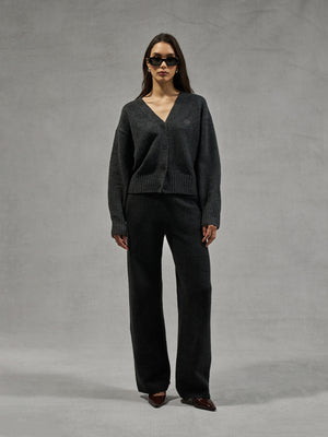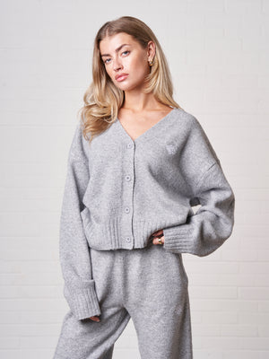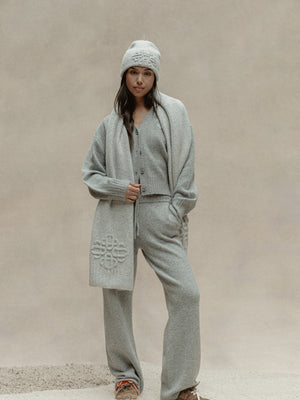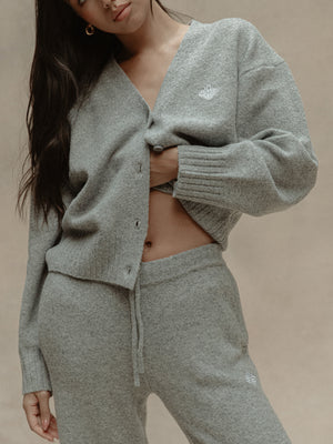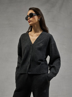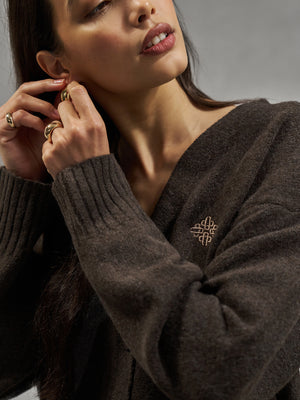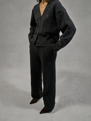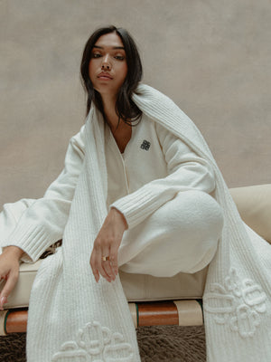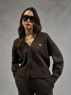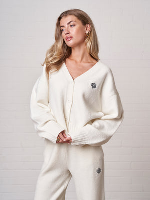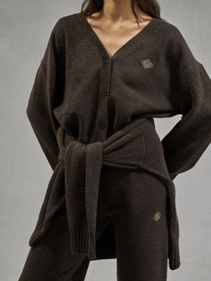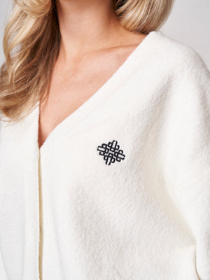 FLUFFY KNITTED EMBLEM EMBROIDERED CARDIGAN