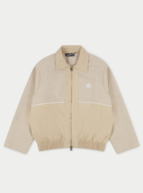TWEED PANELLED BOMBER JACKET - BEIGE