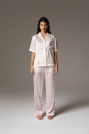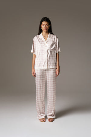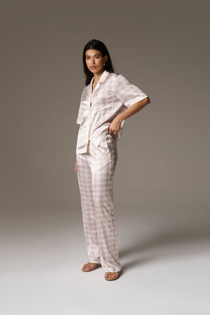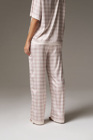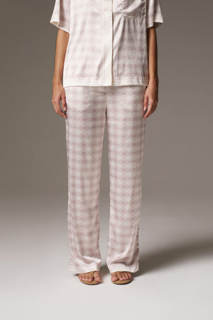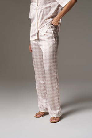 EMBLEM PRINT WIDE LEG TROUSERS - BEIGE
