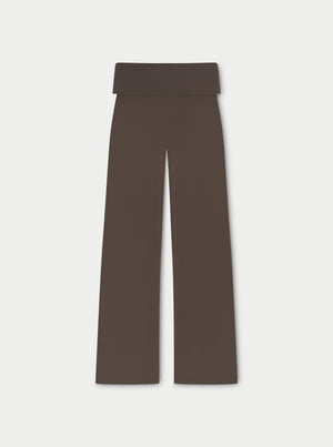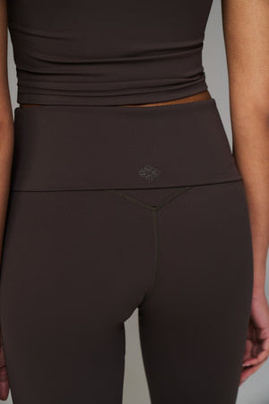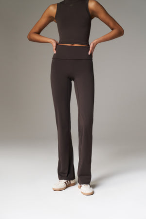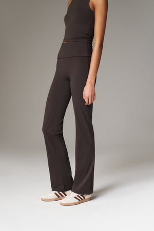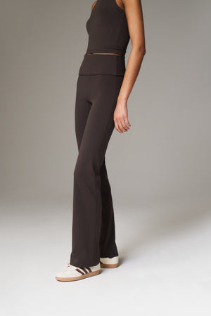 SCULPTING STRETCH FOLDOVER WAISTBAND YOGA PANTS - CHOCOLATE