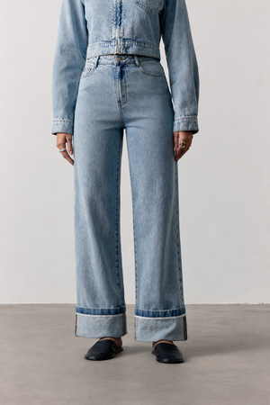 TURN UP HEM WIDE LEG JEANS
