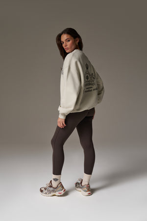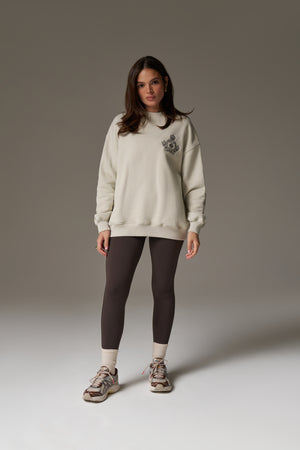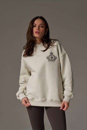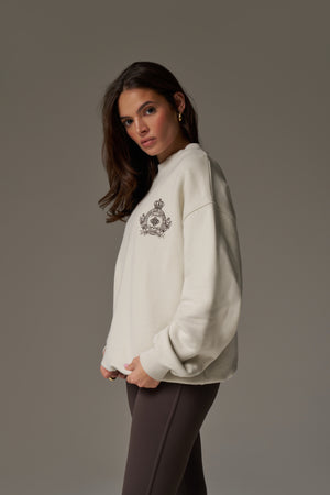 EMBROIDERED CREST OVERSIZED SWEATSHIRT - BONE
