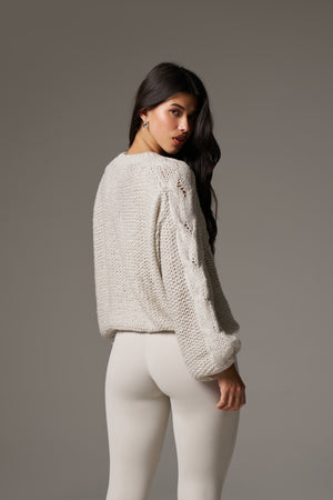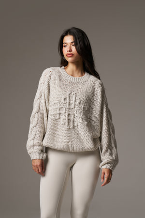 EMBLEM PLAITED OVERSIZED KNIT JUMPER - STONE