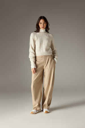 C SCRIPT EMBROIDERED OVERSIZED EMBLEM JUMPER - BEIGE