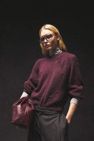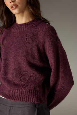 C SCRIPT EMBROIDERED OVERSIZED EMBLEM JUMPER - PLUM