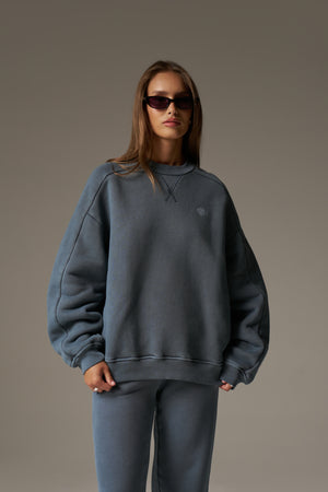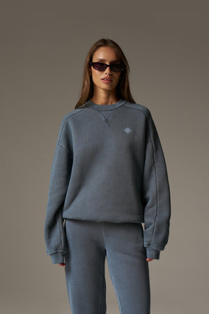 LAUNDERED CLASSICS SEAM DETAIL SWEATSHIRT - PETROL BLUE