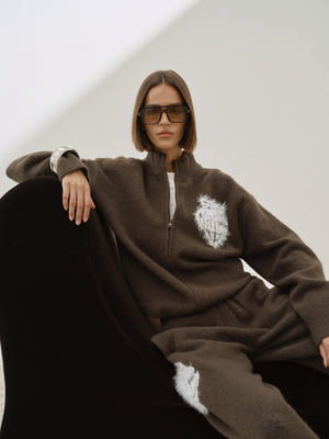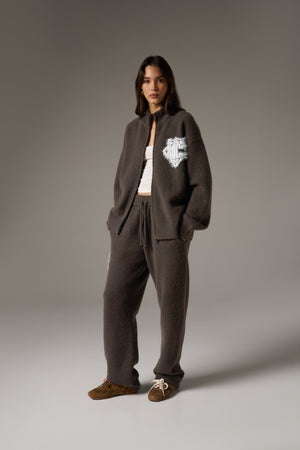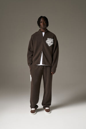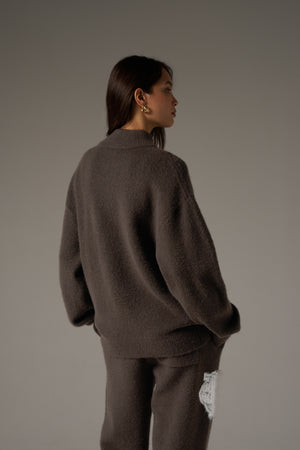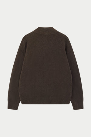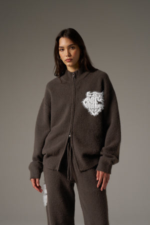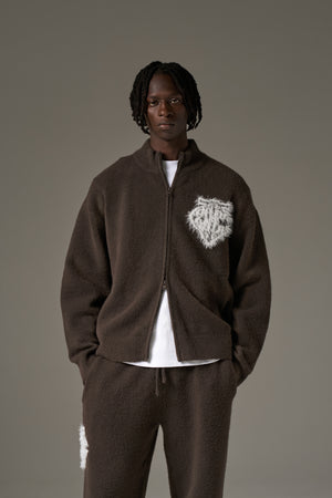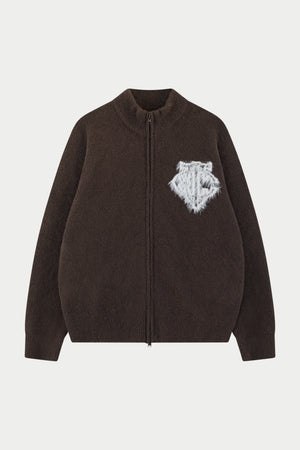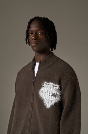 MONOGRAM FLUFFY KNIT ZIP THROUGH - BROWN