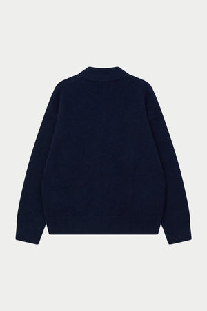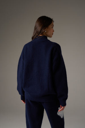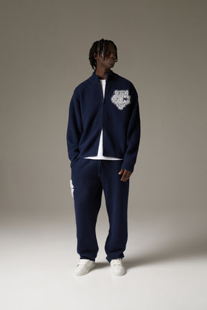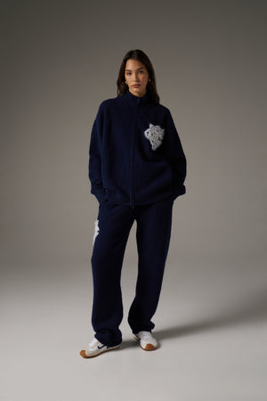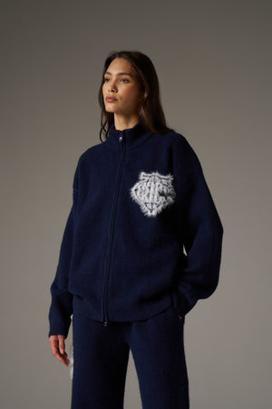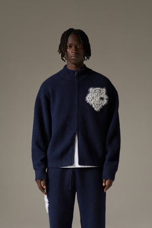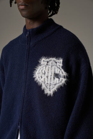 MONOGRAM FLUFFY KNIT ZIP THROUGH - NAVY