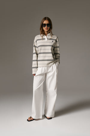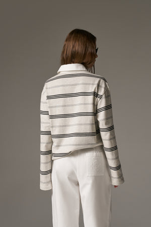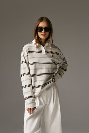 - Jersey striped long sleeved polo tee