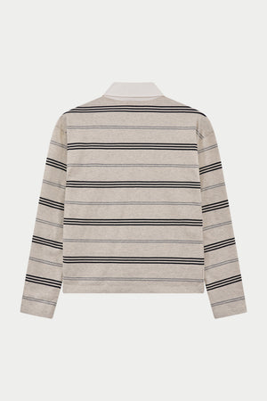 STRIPED LONG SLEEVE POLO TEE - GREY MARL