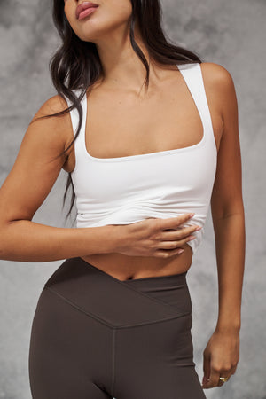 SCULPTING STRETCH SCOOP NECK TOP - WHITE