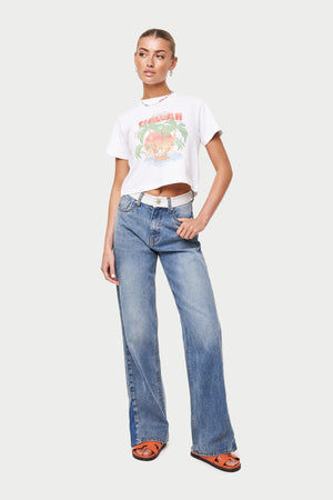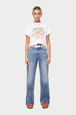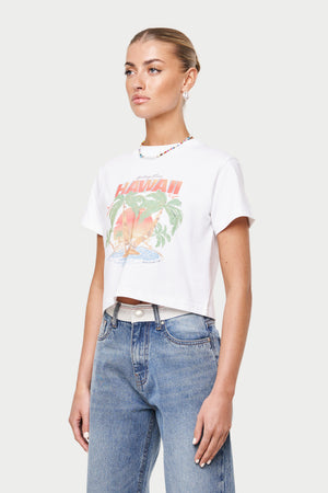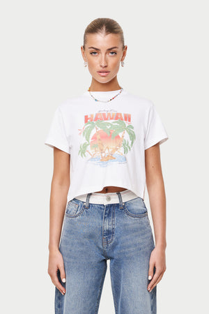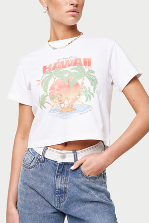 HAWAIIAN PRINT CROPPED T-SHIRT - WHITE