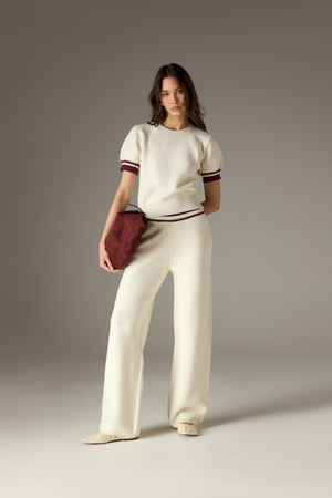 CONTRAST STRIPE KNITTED JOGGERS - OFF WHITE