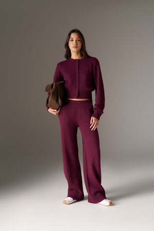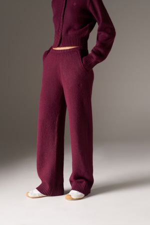 EMBLEM EMBROIDERED KNIT JOGGERS - PLUM