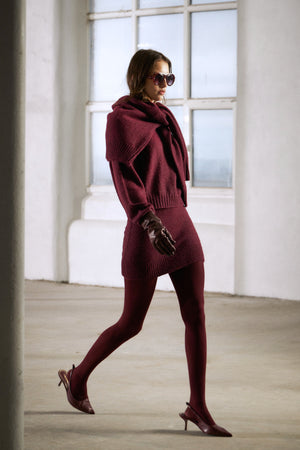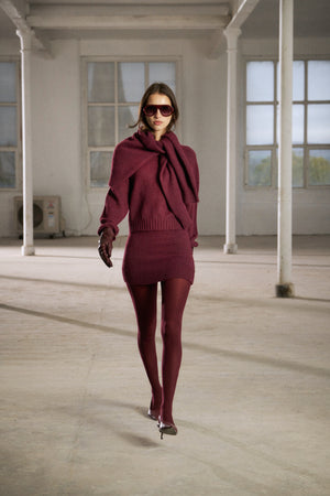 EMBLEM EMBROIDERED KNIT SKIRT - PLUM