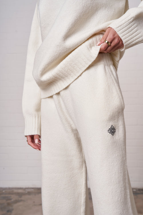 FLUFFY KNIT EMBLEM EMBROIDERED JOGGER