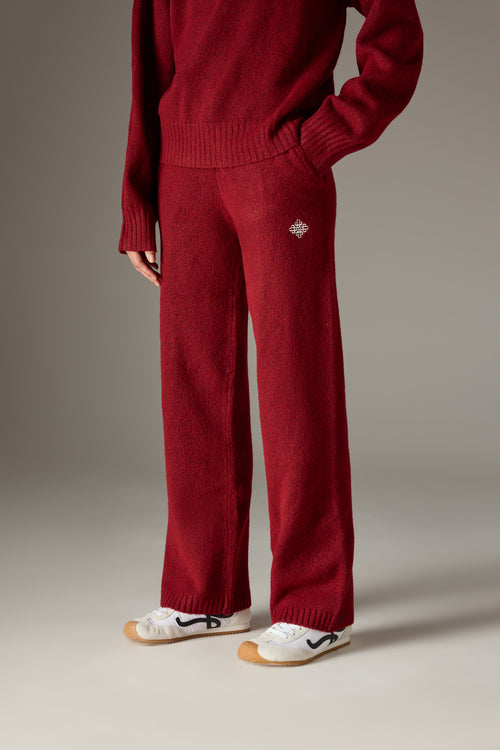 FLUFFY KNIT EMBLEM EMBROIDERED JOGGER - BURGUNDY