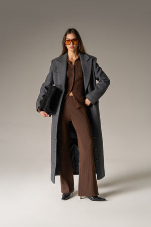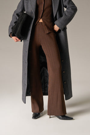 RIBBED KNITTED TROUSERS - CHOCOLATE