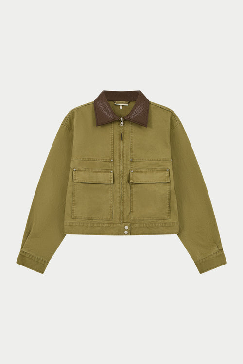WASHED CONTRAST COLLAR TRUCKER JACKET