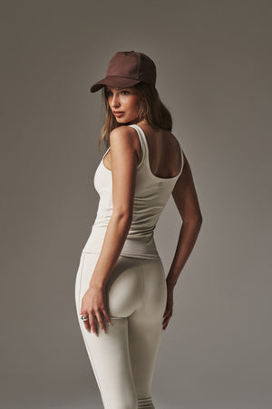 SCULPTING STRETCH SCOOP NECK SPORTS TOP - BONE